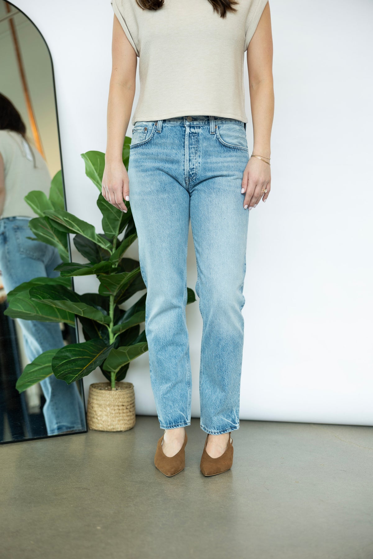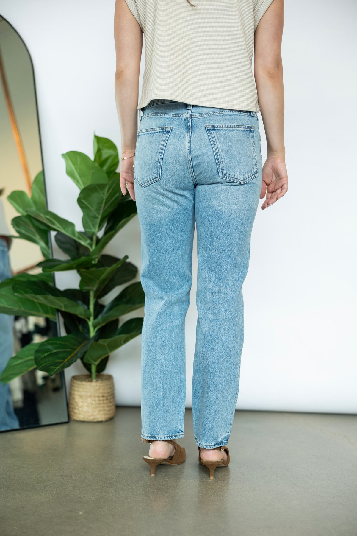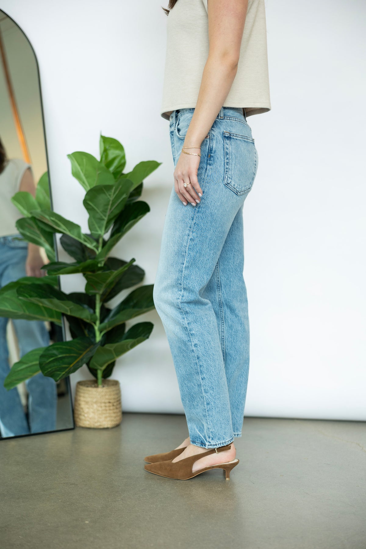 The Romney Jean is your new denim obsession. This Agolde classic features a flattering mid-rise cut that sits just right, paired with a vintage-inspired straight leg that works with everything in your closet. The light wash gives it that effortlessly cool, lived-in vibe—perfect for dressing up or down. Timeless style that actually feels like your favorite pair.