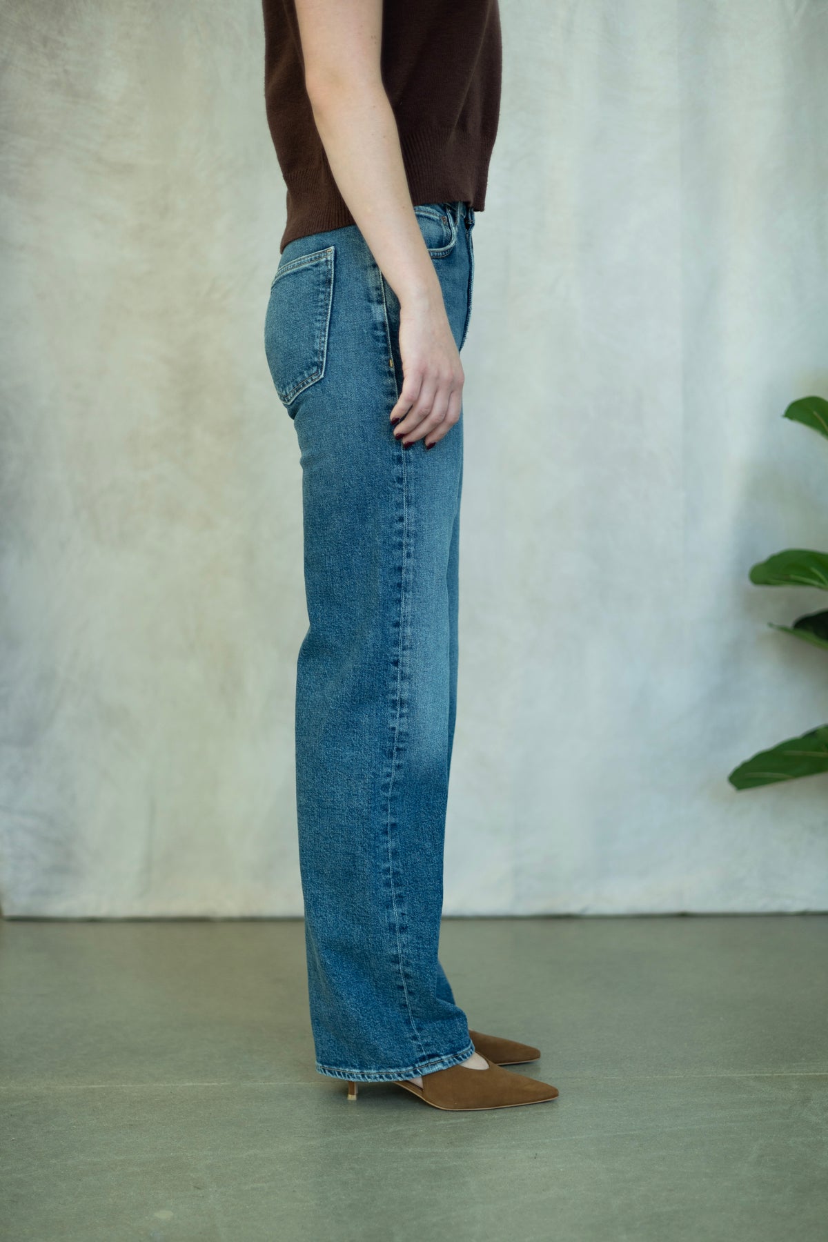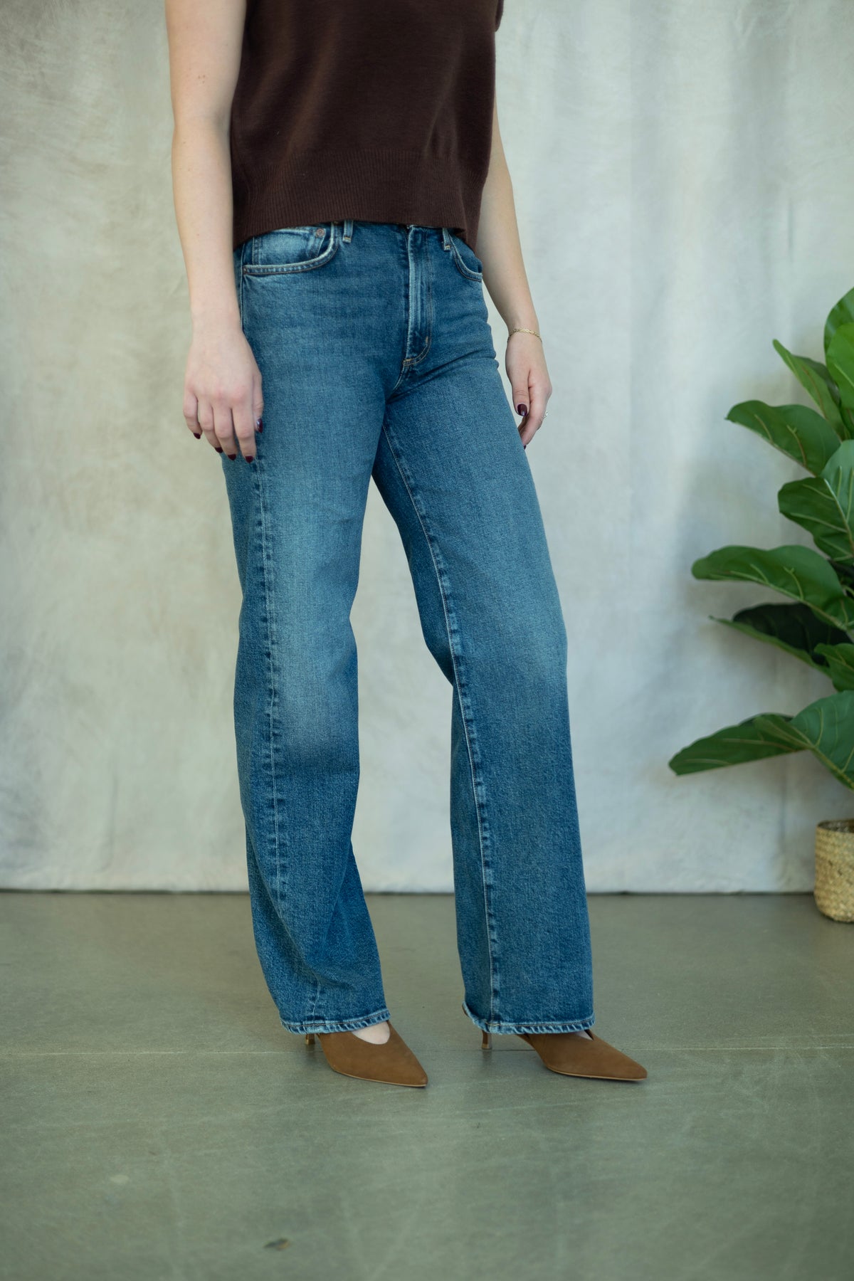 The Harper Straight jeans from Agolde offer a timeless medium wash crafted for everyday wear. With a classic straight-leg fit, these casual jeans blend comfort and style effortlessly, making them a versatile staple for your wardrobe. Designed with quality fabric, they provide lasting durability while maintaining a modern, laid-back look perfect for any occasion.