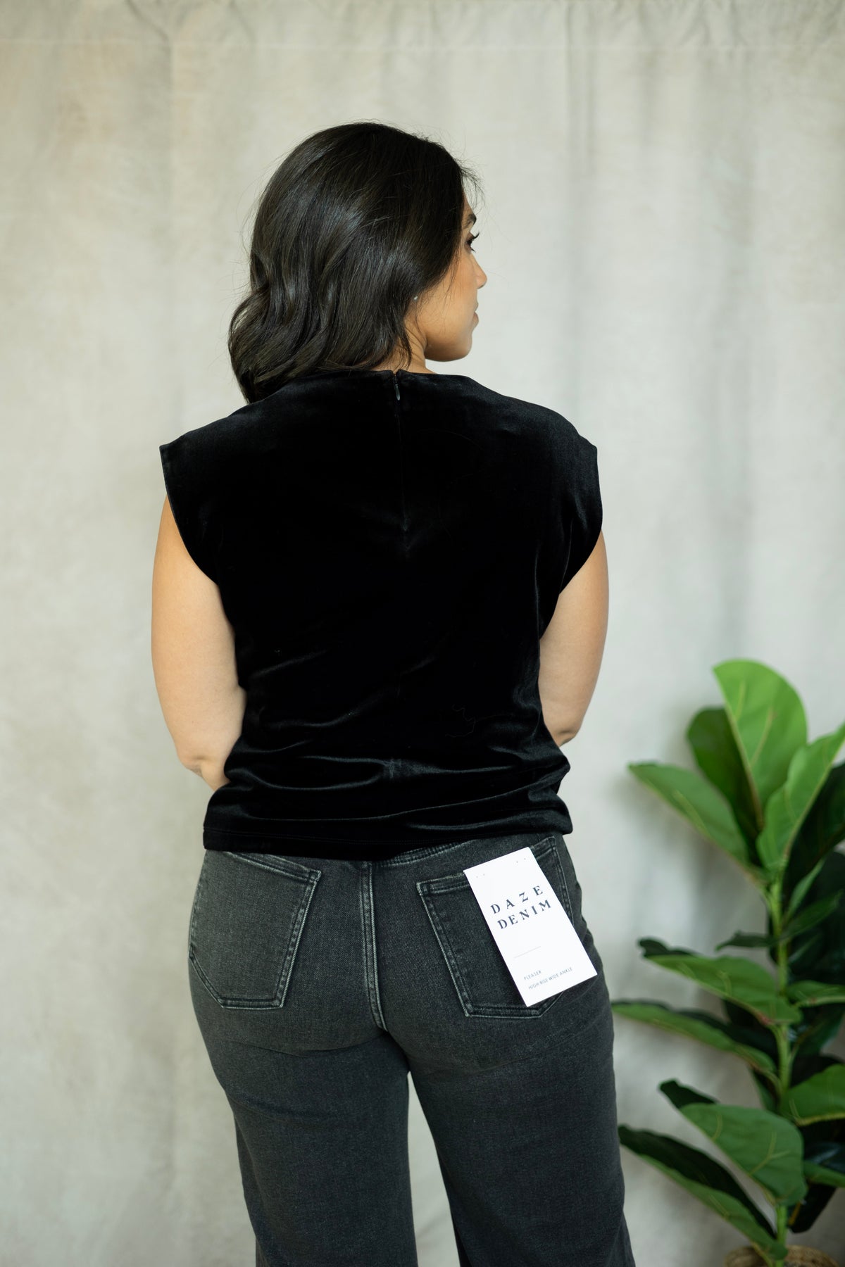 Elevate your evening wardrobe with this sophisticated black velvet sleeveless top from Sanctuary. The refined pleated design creates elegant dimension and movement, while the luxurious velvet fabric delivers a polished, upscale aesthetic. Versatile enough for holiday gatherings yet striking enough for a night out, this piece pairs seamlessly with tailored trousers or a skirt for an effortlessly chic look.