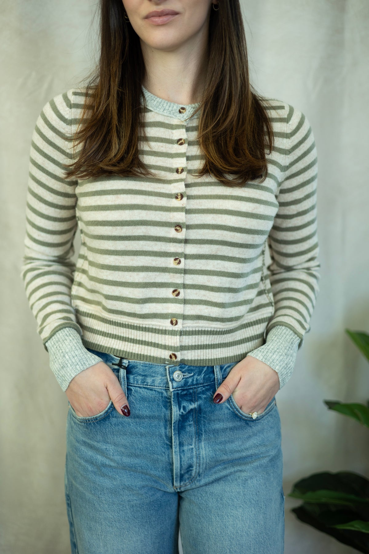 This Striped Pattern Button Front Cardigan offers a lightweight and breathable layer perfect for transitional weather. Its subtle stripe design pairs effortlessly with neutral tones like beige, white, and soft grays, or can add contrast when styled with navy or muted earth colors. Designed for easy wear, this cardigan balances comfort and style, making it an ideal layering piece for both casual and polished outfits.