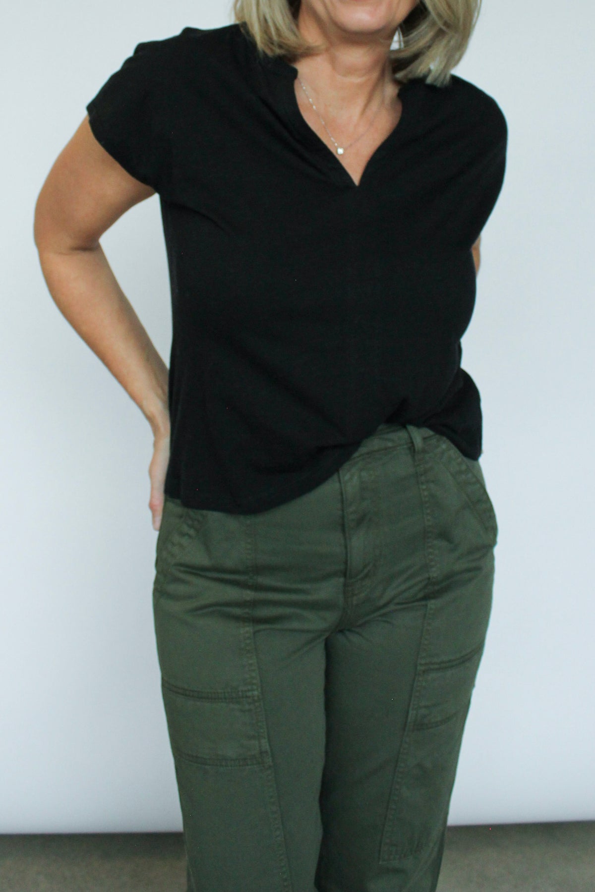 A timeless wardrobe essential, this classic black muscle tee from Sanctuary features a refined v-neck design that flatters any frame. The notched neckline adds subtle sophistication while maintaining the relaxed comfort you need for everyday wear. Versatile enough to layer or wear solo, this piece transitions seamlessly from casual outings to laid-back weekends.