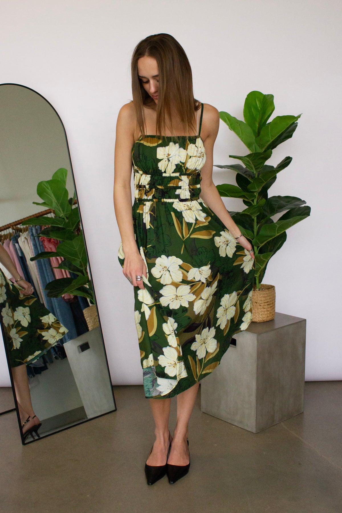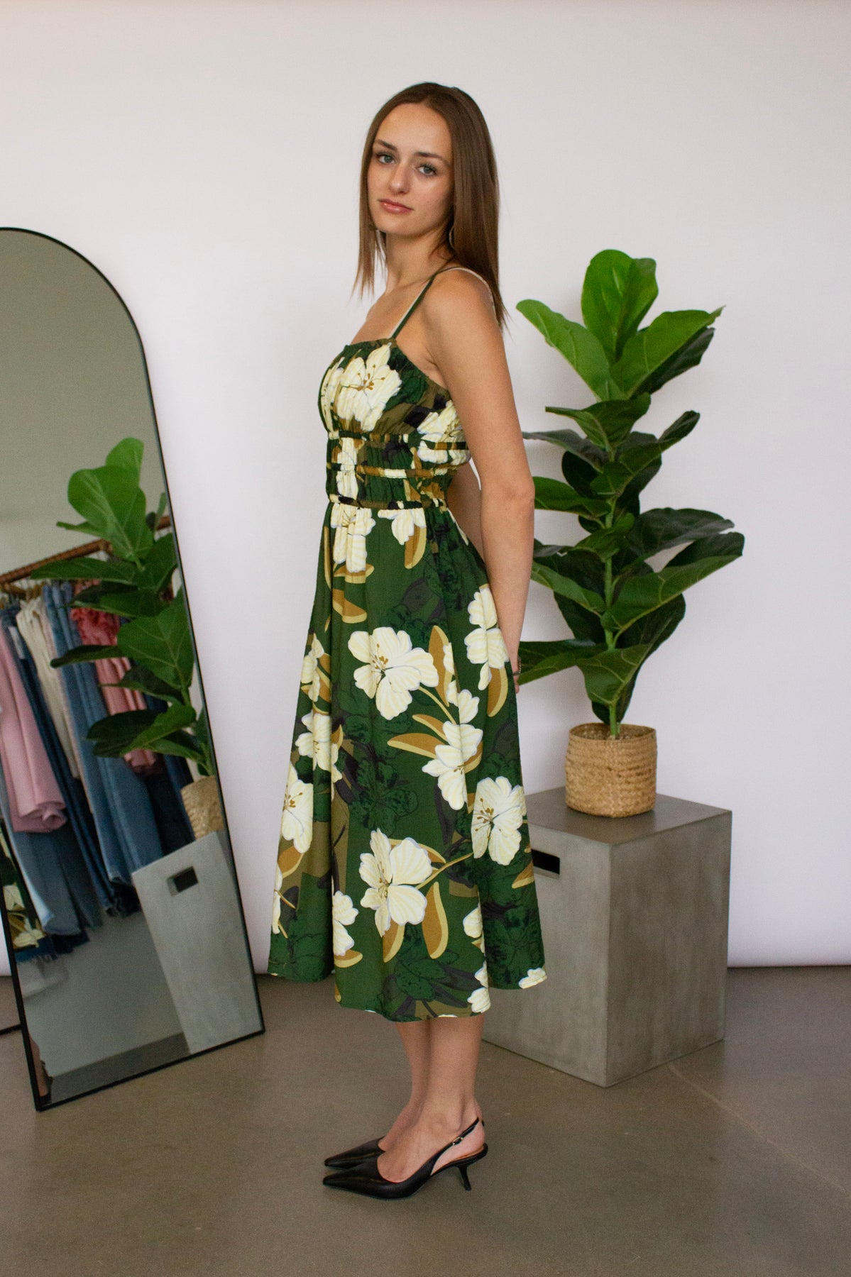 Effortless elegance meets everyday comfort in this floral green midi dress. The elastic waist provides a flattering, adjustable fit that moves with you throughout the day. Perfect for casual outings, work, or weekend gatherings, this versatile piece transitions seamlessly from season to season. The midi length offers a timeless silhouette while the soft fabric drapes beautifully. A wardrobe essential that combines style with practical comfort.