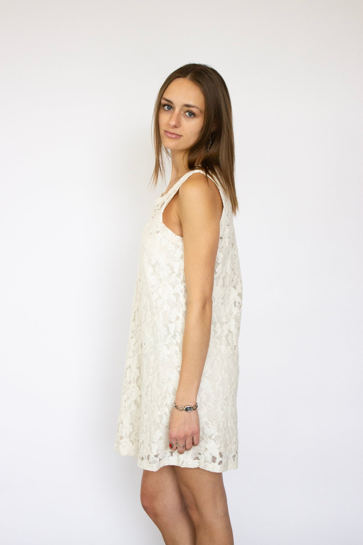 Effortless elegance meets everyday comfort in this ivory lace tank dress by Sanctuary. The delicate lace overlay creates a romantic, feminine silhouette while the built-in slip ensures a smooth, confident fit. Perfect for layering or wearing solo, this versatile piece transitions seamlessly from casual weekend outings to dressed-up occasions. The lightweight construction and breathable fabric make it ideal for warm weather styling. A timeless wardrobe essential that pairs beautifully with sneakers, sandals, or heels.