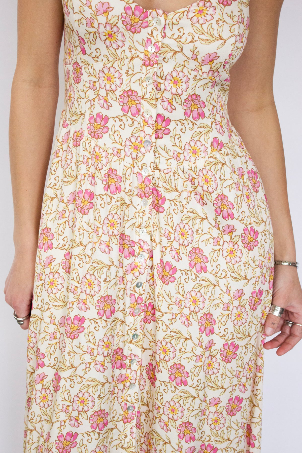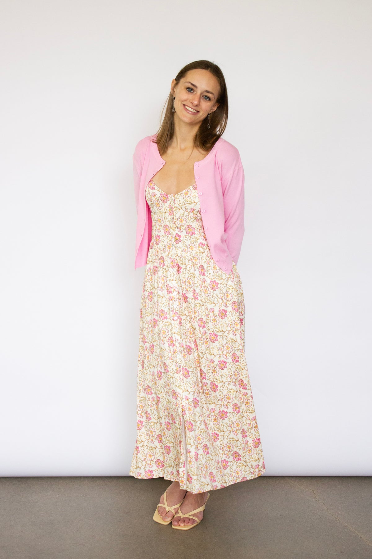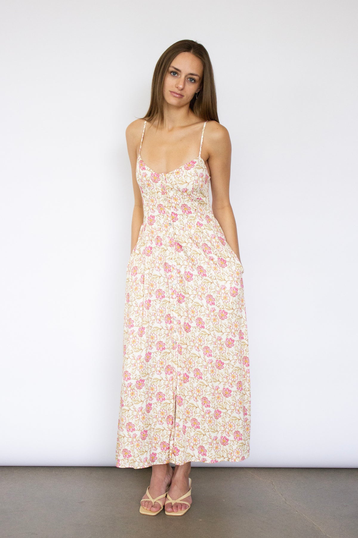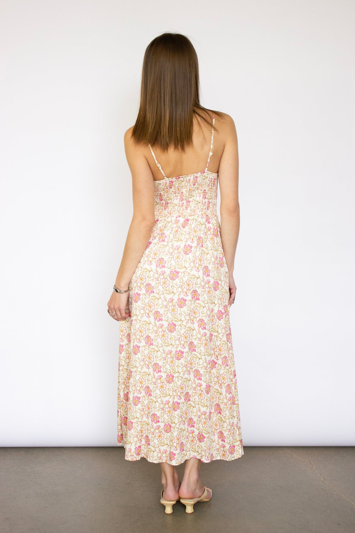 This flowing dress features a romantic floral pattern and delicate spaghetti straps, perfect for warm-weather occasions. The relaxed silhouette drapes beautifully, offering comfort without compromising style. Whether you're heading to a garden party or a seaside escape, this dress captures the essence of Saltwater Luxe's laid-back sophistication.