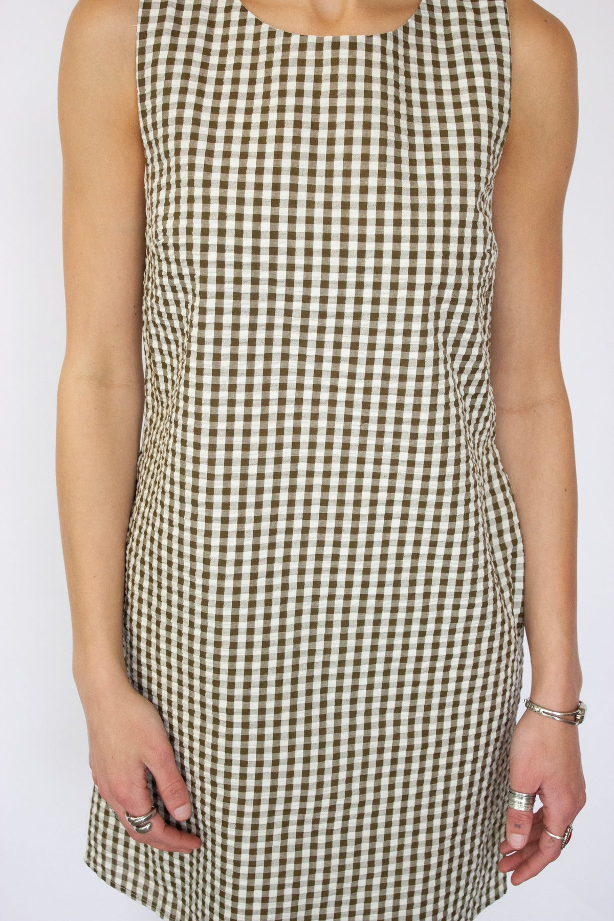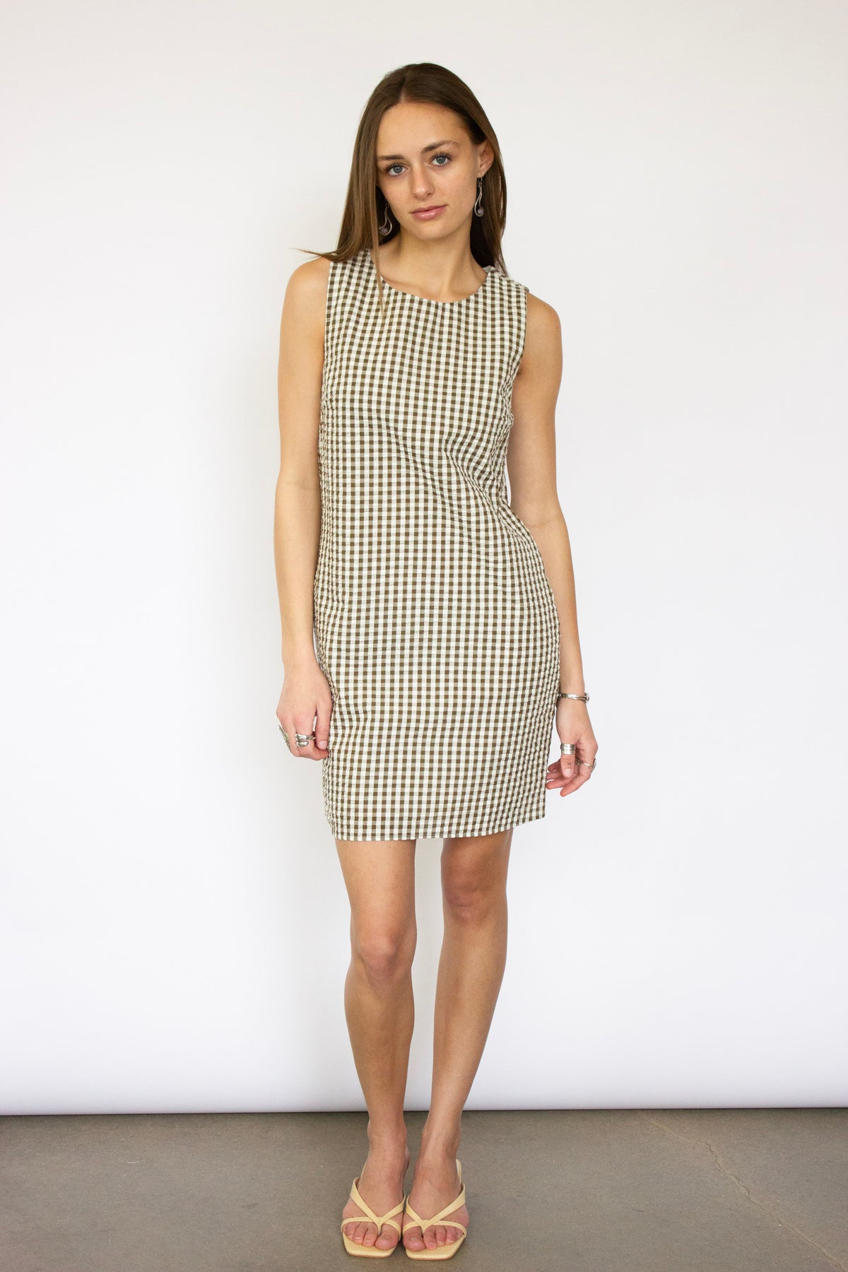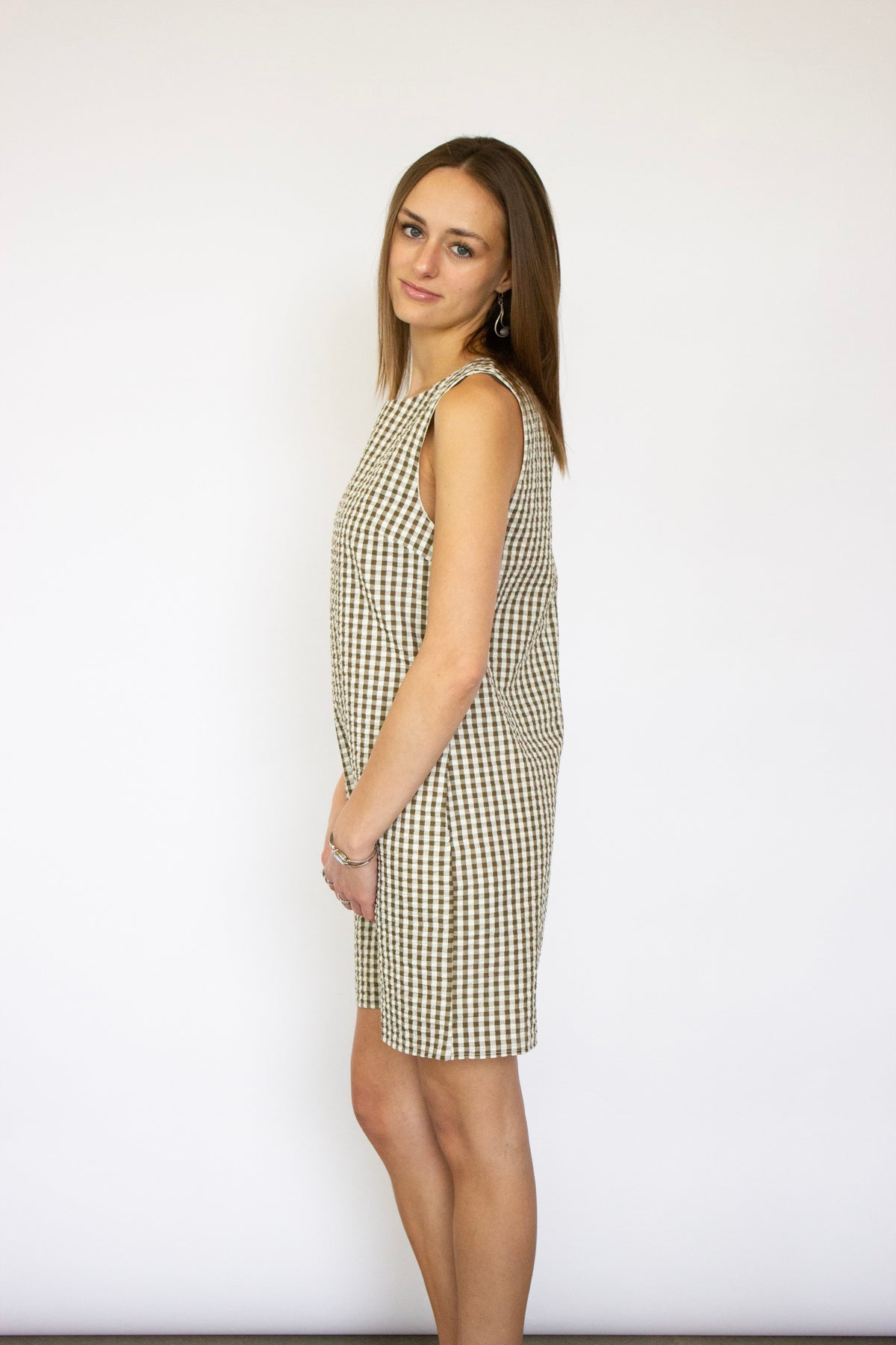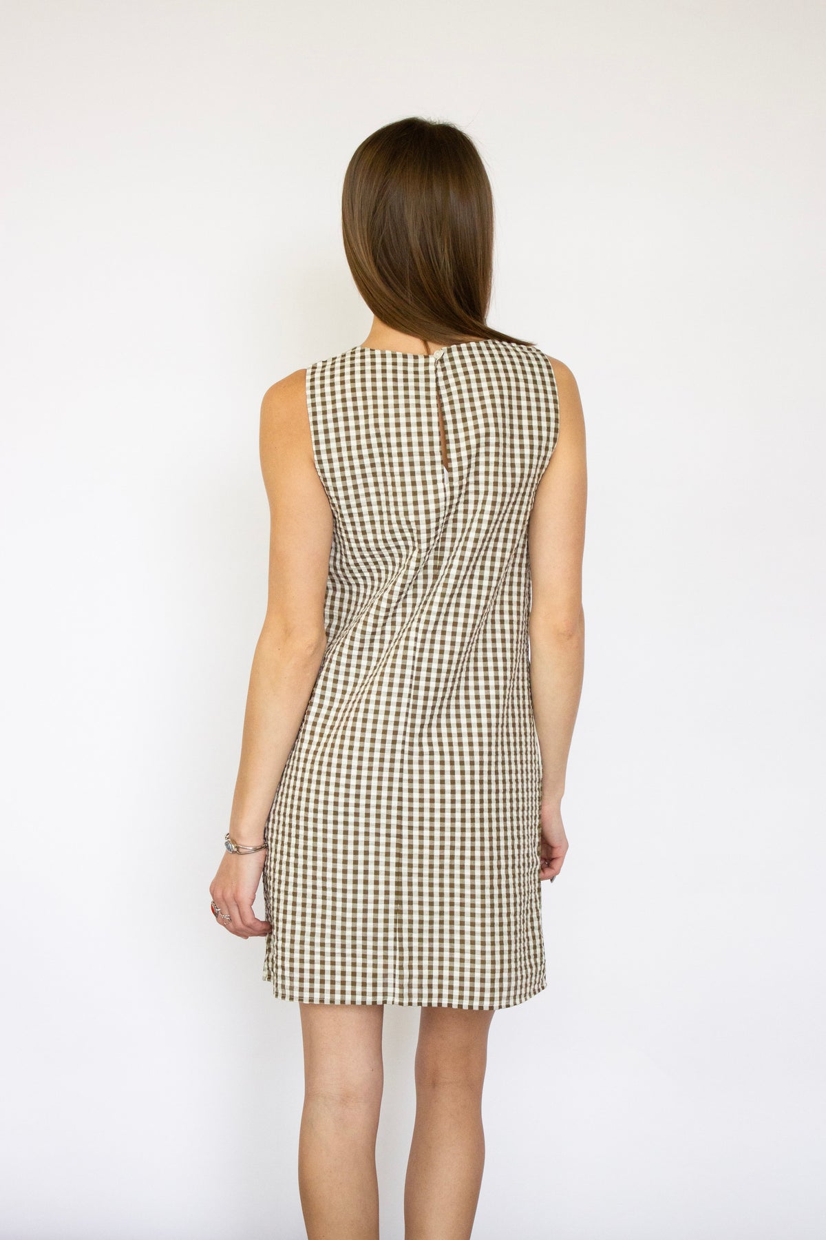 Effortless charm meets timeless style with this green and white gingham shift dress. The classic checked pattern brings a fresh, preppy aesthetic perfect for casual outings, weekend brunches, or laid-back summer days. The relaxed shift silhouette offers comfortable, flattering coverage that moves with you. Pair it with sneakers for a playful daytime look or dress it up with sandals and accessories for an evening out. A versatile wardrobe essential that transitions seamlessly from season to season.