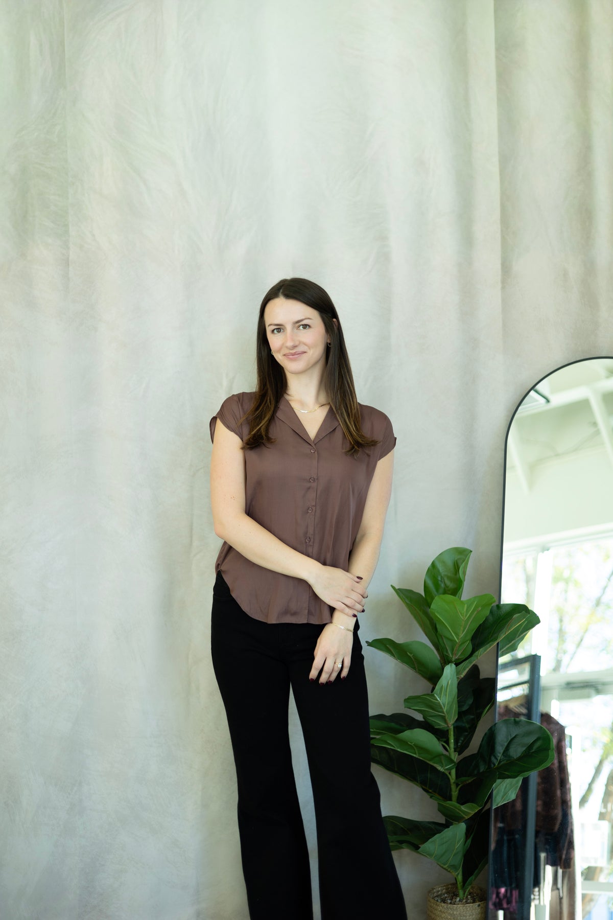 This Button Down Cap Sleeve Shirt features a beautiful color that seamlessly transitions from casual to professional settings. Its tailored fit and versatile design make it ideal for work, weekends, or dressier occasions, offering both style and comfort throughout your day.