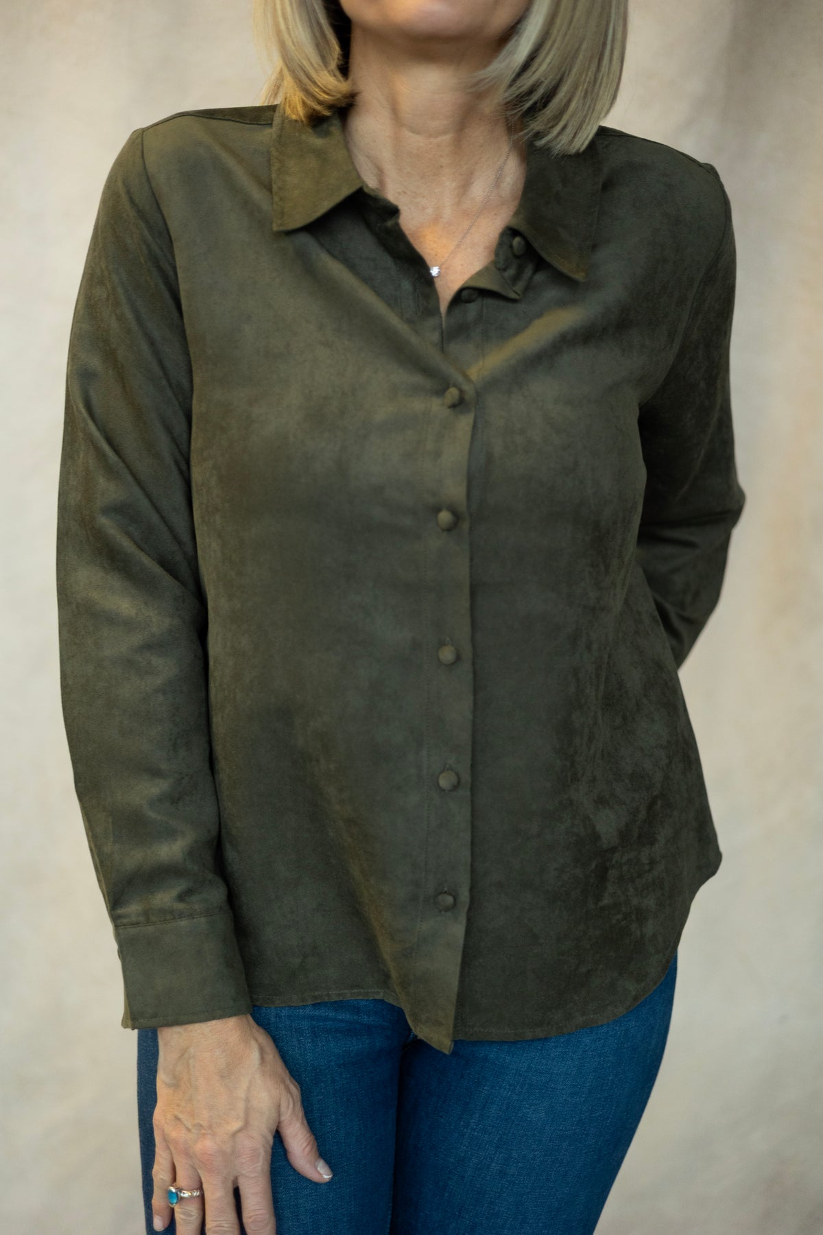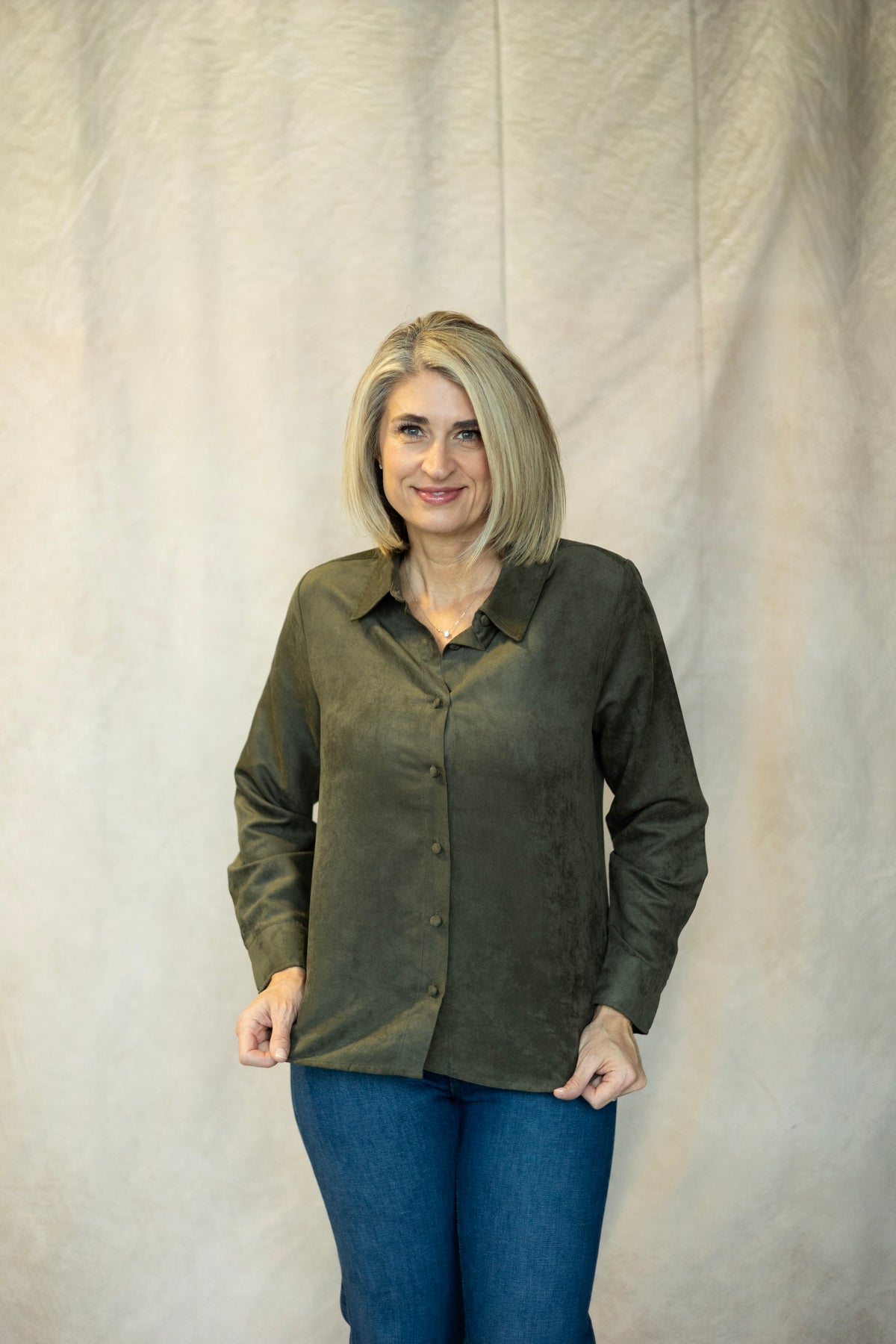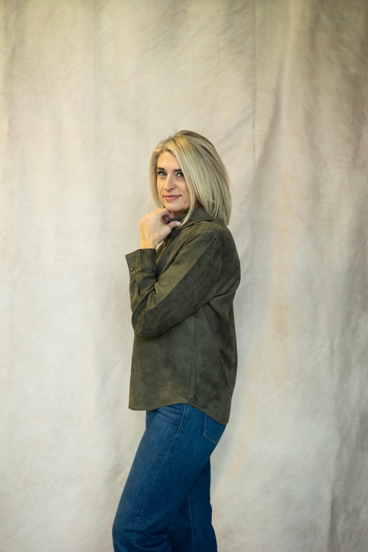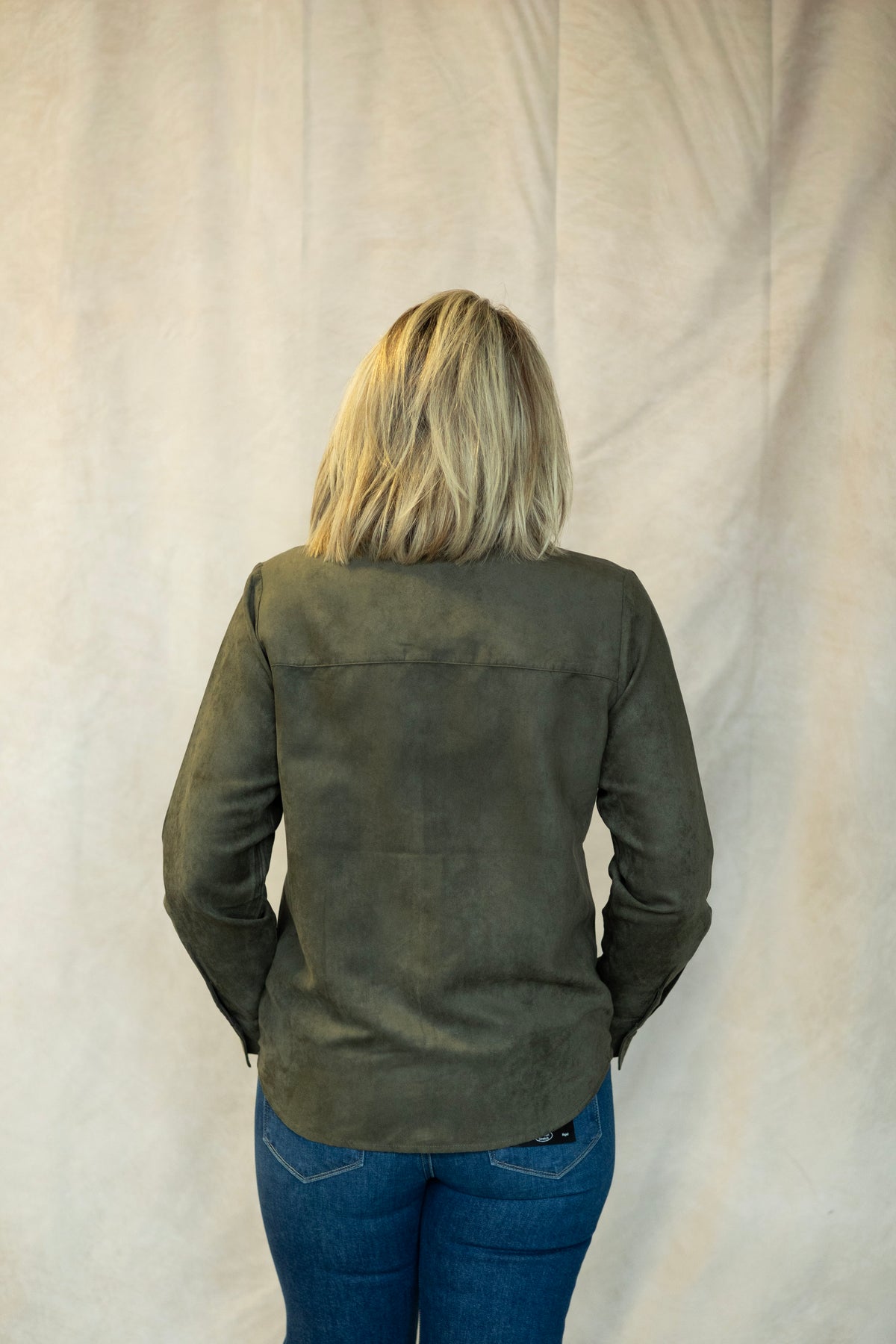 The Retra is your new go-to for effortless cool. Crafted in soft olive green suede, this button-down brings understated sophistication with a touch of laid-back charm. Perfect for layering over basics or wearing solo, it's the kind of piece that makes getting dressed feel like an adventure.
