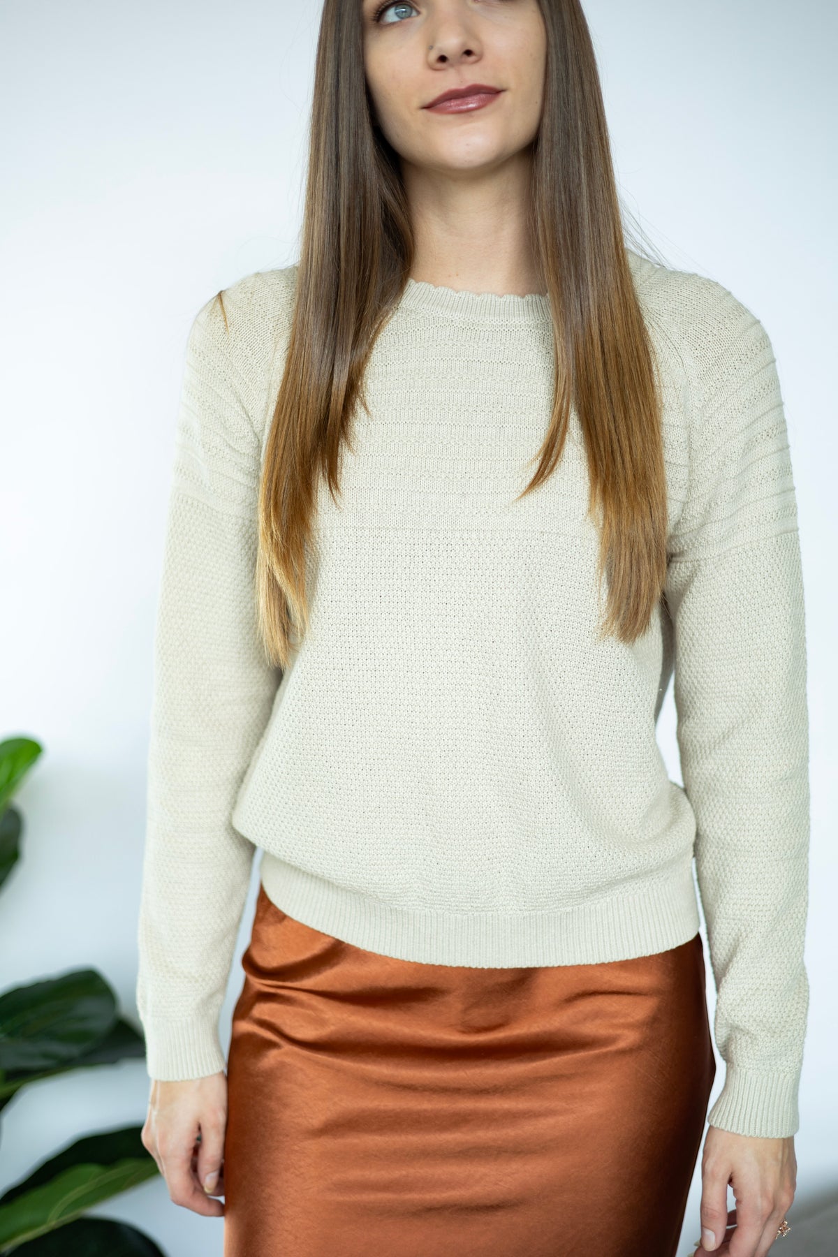 Elevate your everyday wardrobe with this refined sweater top, featuring a delicate scallop neckline that adds subtle sophistication. Crafted in a versatile taupe hue, this lightweight layer transitions seamlessly from season to season, offering warmth without bulk. The understated design pairs effortlessly with both casual and polished pieces, making it an essential addition to any closet. Perfect for layering or wearing solo, this piece delivers timeless style with modern sensibility.
