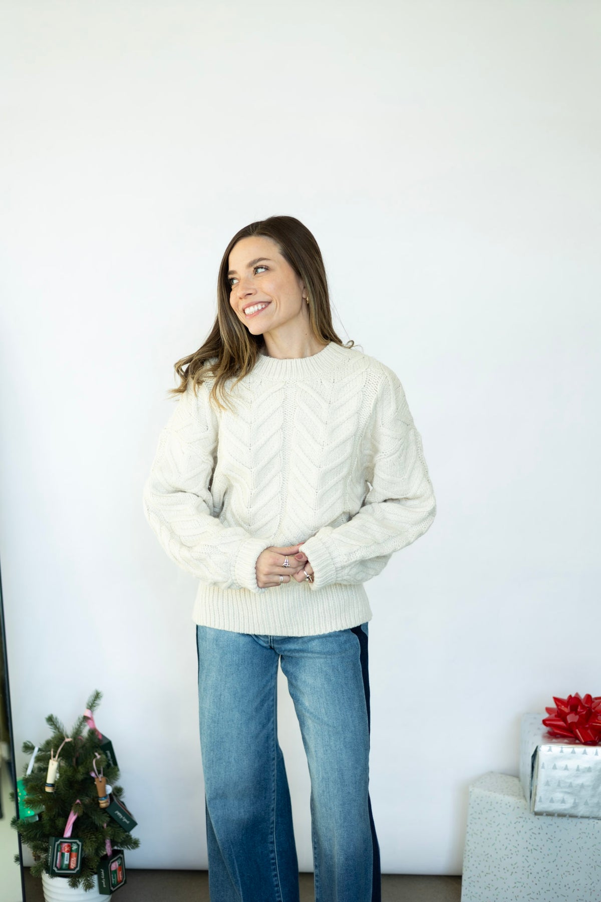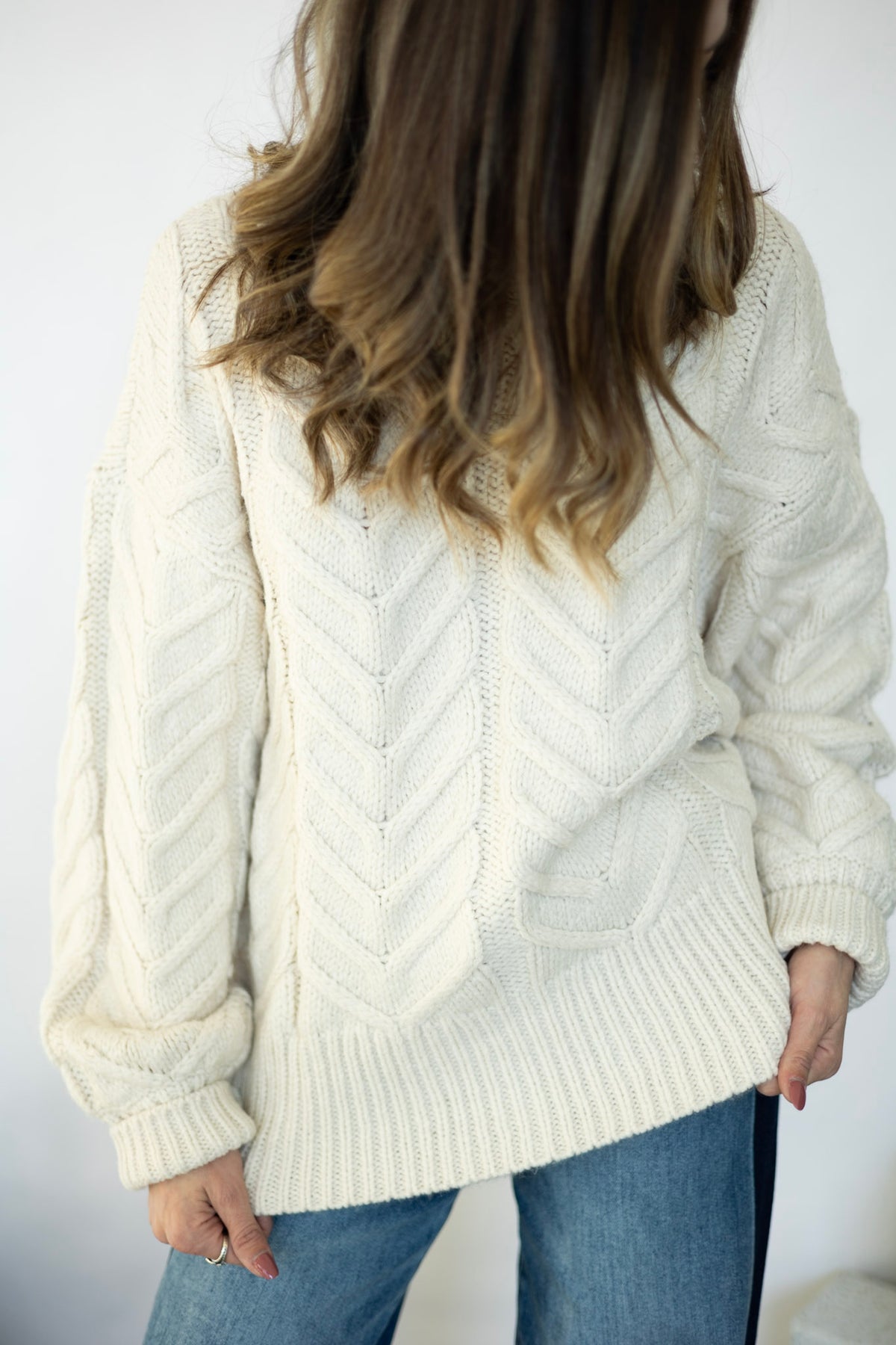 Stay cozy and stylish with the Snow Bunny Statement Sweater. Made of cream-colored cable knit for a chic look, this oversized sweater from Sanctuary is perfect for the colder months. Whether you're hitting the slopes or just lounging at home, this sweater is a must-have.