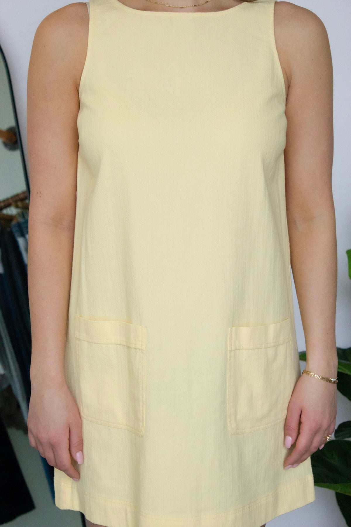 The Casey Dress from Gentle Fawn is a versatile style perfect for warm weather wear. Crafted in a cheerful yellow hue, this dress features practical front pockets. The sleeveless design offers breathable comfort, while the clean silhouette works beautifully for casual outings or dressed-up occasions.