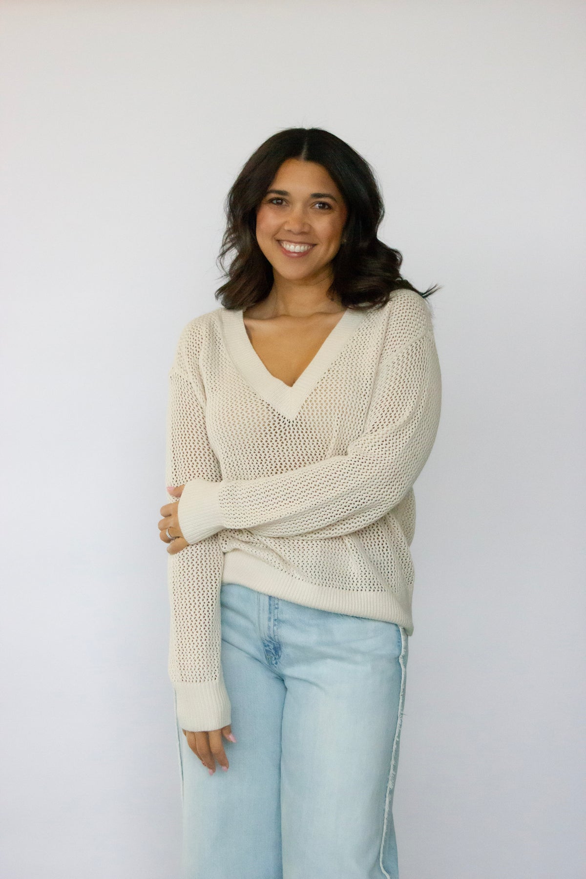 The Jensen Sweater from Gentle Fawn combines effortless elegance with comfortable style. This open knit design features a flattering V-neckline that works beautifully layered or worn alone. Crafted in a soft, breathable knit, it's perfect for transitional seasons when you want texture without weight. The relaxed fit moves with you throughout your day, making it an ideal choice for casual outings or cozy evenings at home.