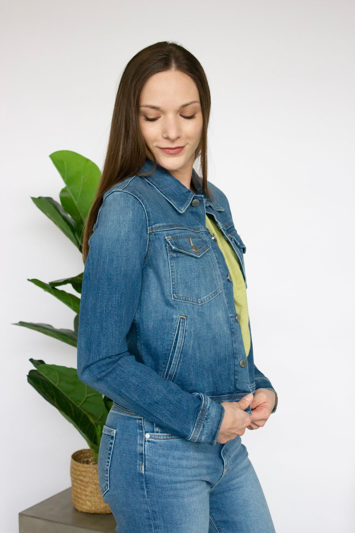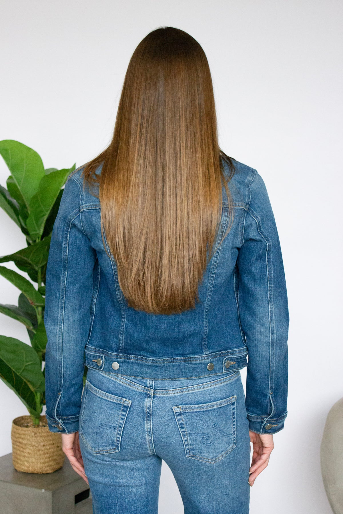 The Robyn Jacket from AG combines classic denim style with modern refinements. This slim-fit design features adjustable waist tabs for a customized fit, while chest flap pockets and welt front pockets offer practical storage. Metal buttons and an embossed logo on the chest flap pocket add distinctive detailing. A versatile staple that transitions effortlessly from casual to dressed-up looks.