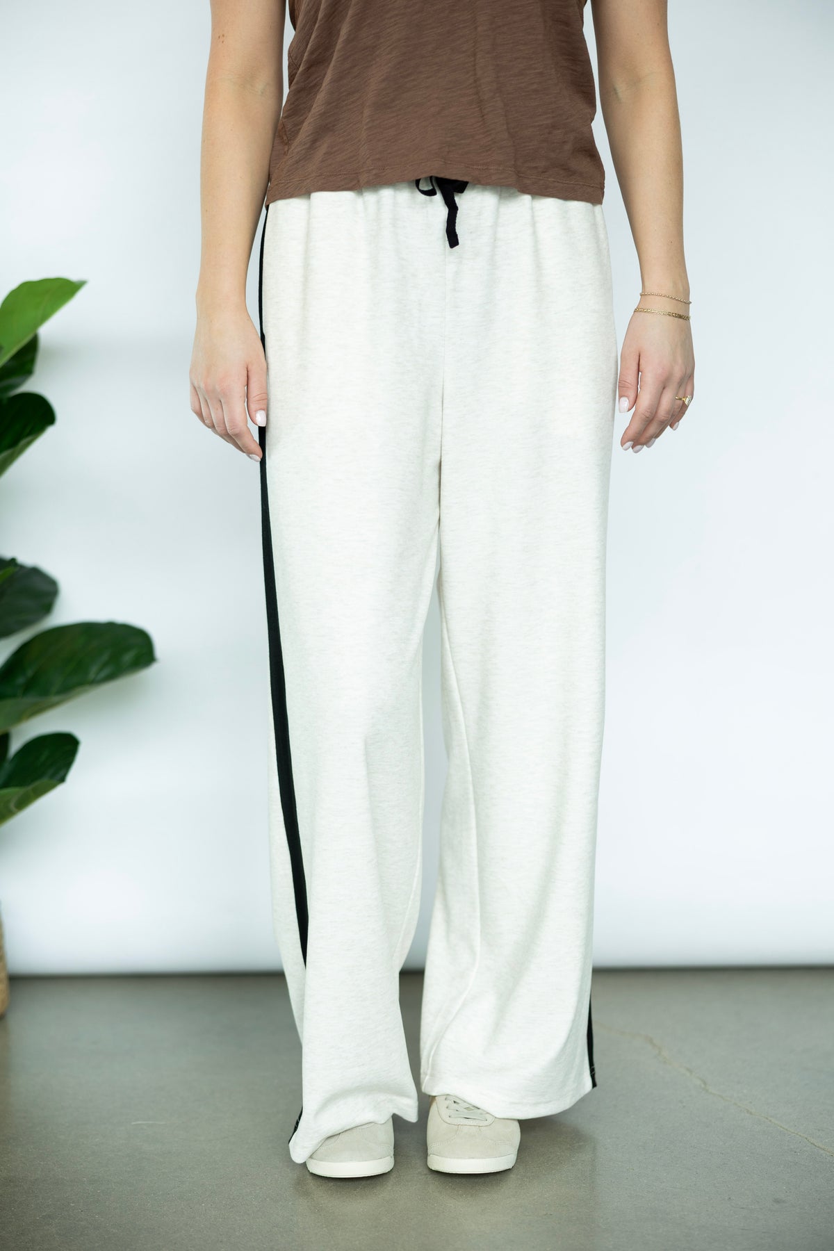 Slip into pure comfort with our Metro Knit Pants—the ultimate easy-wear essential. Crafted from super soft, lightweight fabric, these wide-leg beauties move with you all day long. The cream base with sleek black stripes adds just the right amount of visual interest without trying too hard. Perfect for lounging, running errands, or looking effortlessly put-together whenever the mood strikes.