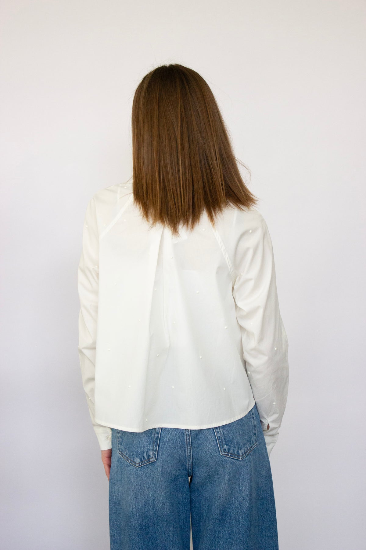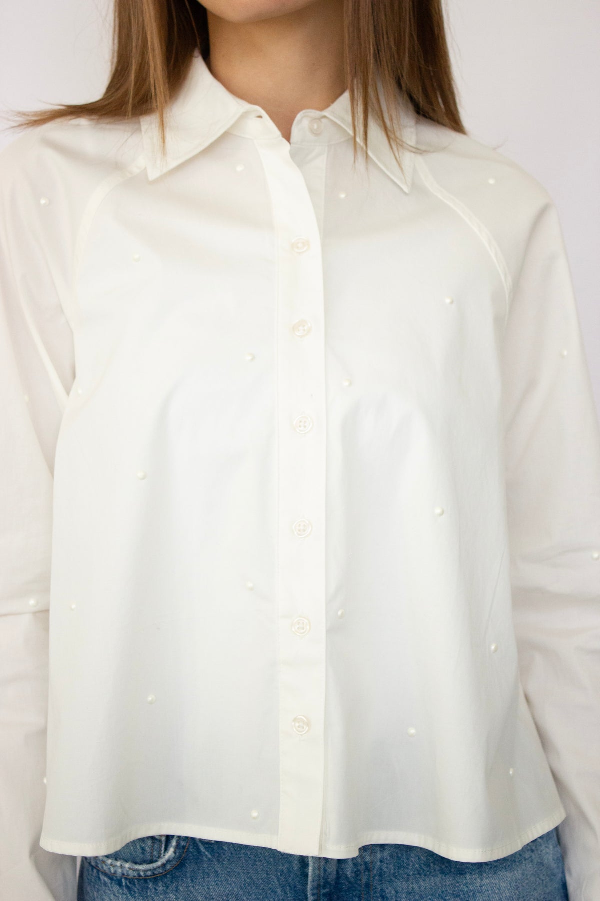 The Tess Top is a cropped button-down shirt from Steve Madden, elevated with delicate pearl embellishments. This versatile piece combines classic tailoring with modern flair, perfect for layering or wearing solo. The cropped silhouette flatters any frame, while the pearl details add a touch of sophistication to casual and dressed-up looks alike. A wardrobe essential that transitions seamlessly from day to night.