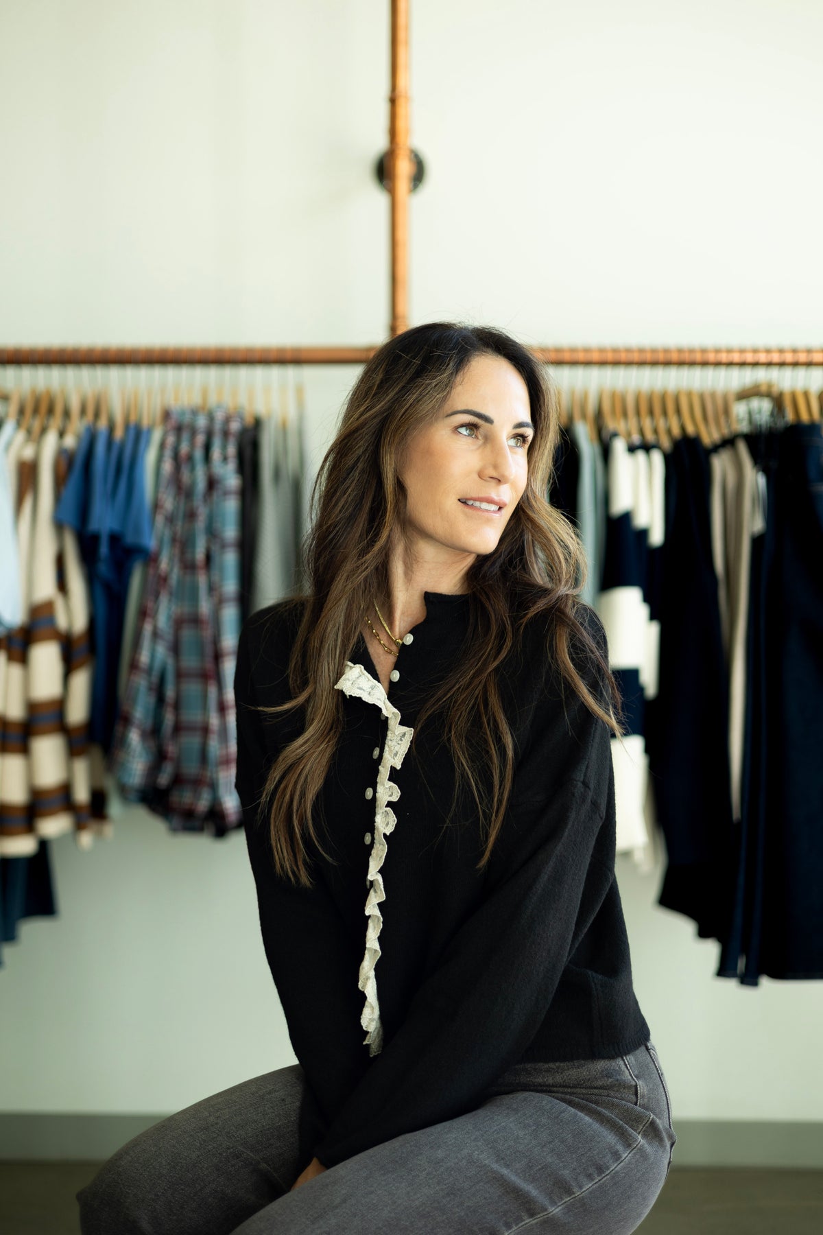 This knit cardigan features a delicate lace trim and button-front design, offering versatility as both a standalone piece or a layering option. Its lightweight construction makes it ideal for transitional weather, combining subtle elegance with practical comfort for a polished look.