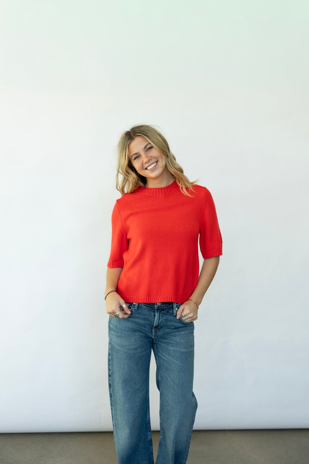 Brighten your wardrobe with this cheerful knitted tee from Sanctuary! Featuring a vibrant tulip hue that practically glows, it's the perfect pick-me-up for your everyday rotation. The cozy knit fabric pairs beautifully with half sleeves that hit just right—ideal for layering or wearing solo when the weather's mild. Simple, stylish, and impossible to ignore, this sweater tee brings instant joy to any outfit.