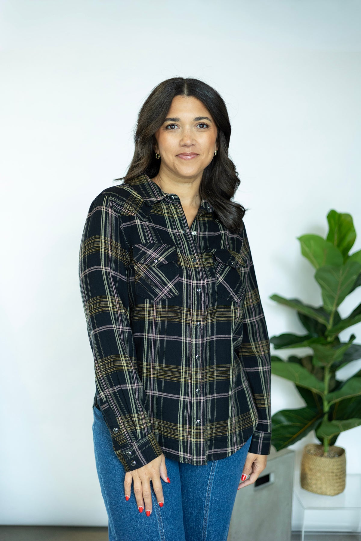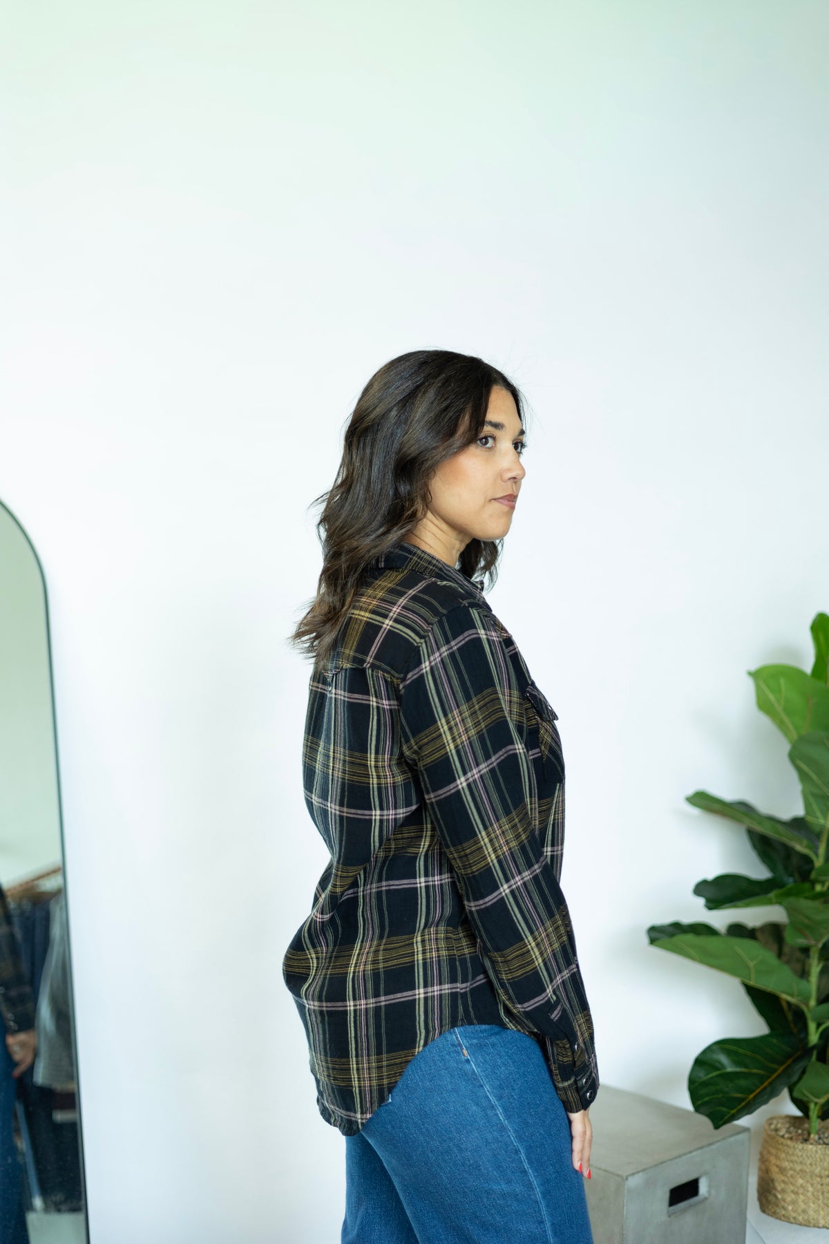 Crafted from soft flannel, the Raquel offers a cozy yet stylish choice with its distinctive pink and yellow striped pattern. Perfect for layering, this piece combines warmth with a subtle color palette that adds a refined touch to casual wear.