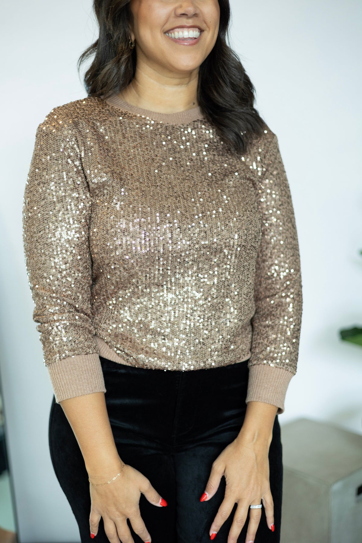 Elevate your holiday wardrobe with the Relaxed Sparkle Popover from Sanctuary. This long-sleeve top features subtle sequins that add festive shimmer without overwhelming your look. Designed for comfort and style, it strikes the perfect balance for seasonal gatherings, making it an essential piece for any holiday occasion.