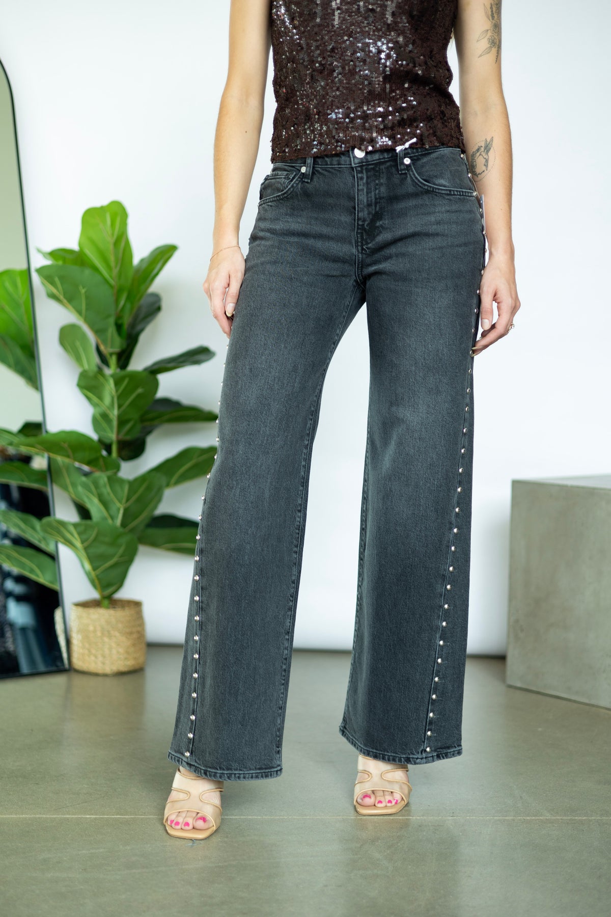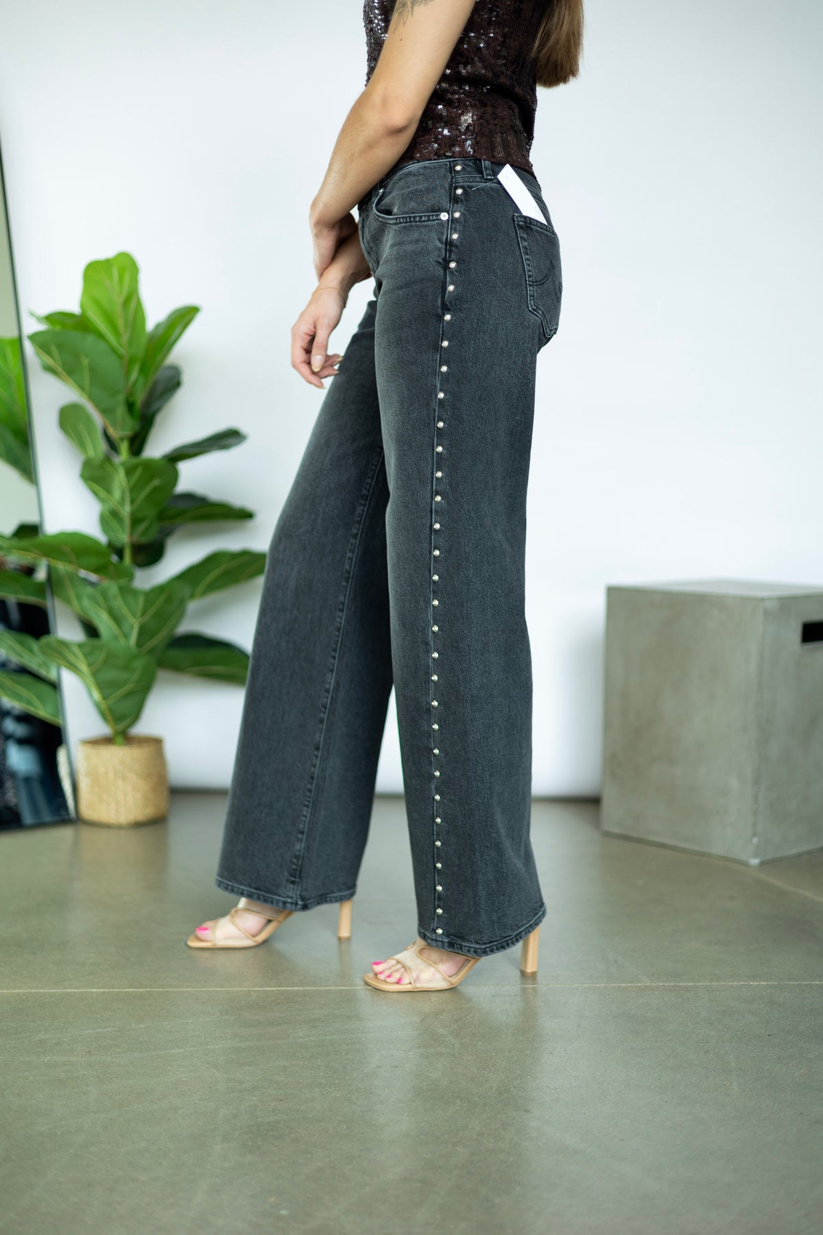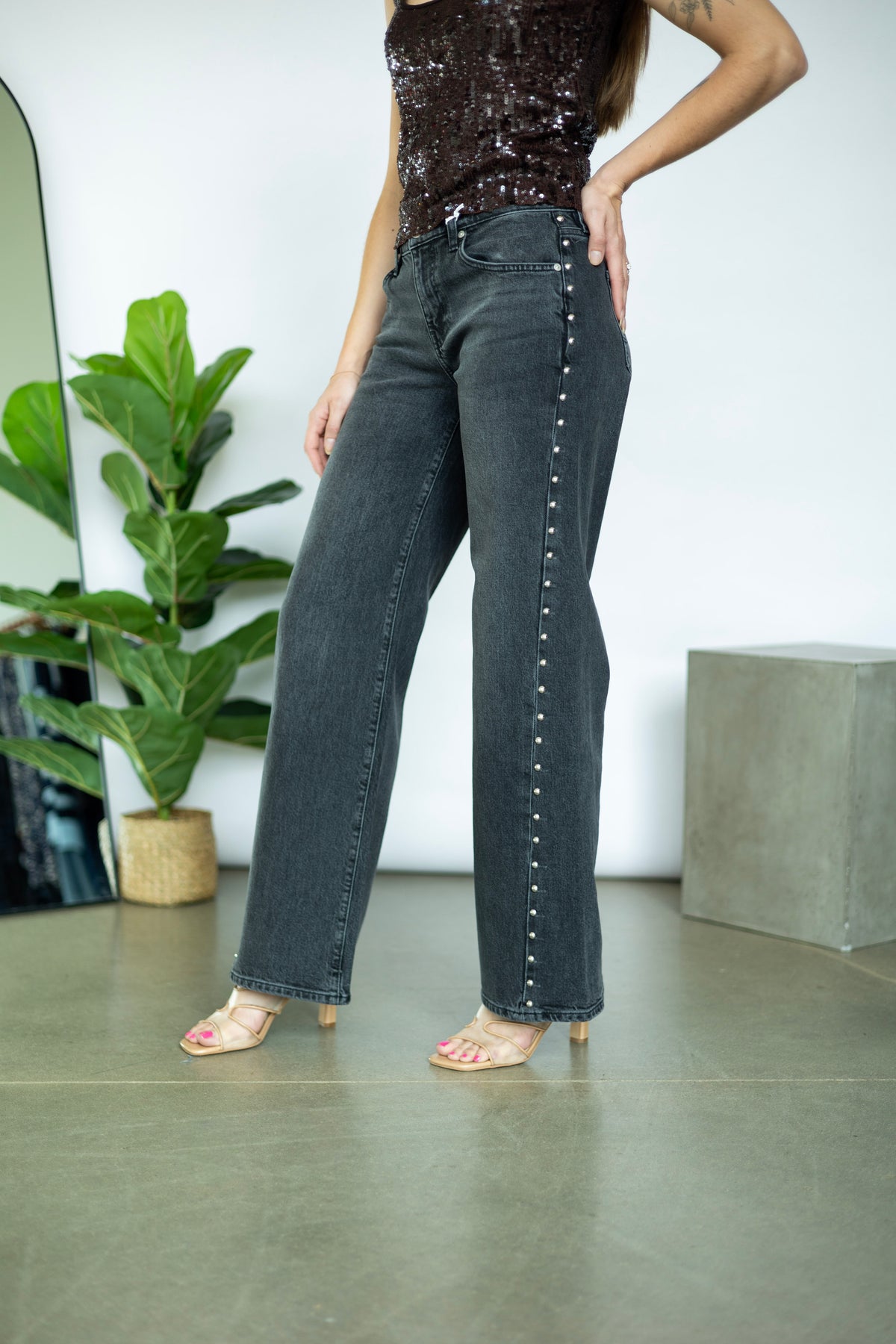 The Adria by AG elevates your denim game with refined tailoring and striking design details. This elevated black denim features delicate silver beading cascading down the sides, adding an unexpected touch of sophistication and sparkle. The expert craftsmanship of AG shines through in every stitch, making this pair equally at home at a special event or a memorable night out.