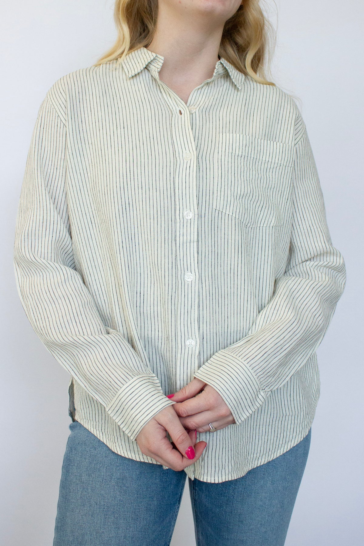 The Dominique Shirt from Gentle Fawn brings effortless style to your everyday wardrobe. Crafted from a breathable linen blend, this button-front design features charming stripes that work beautifully with everything from casual jeans to tailored trousers. Perfect for layering or wearing solo, it's the kind of piece that feels as good as it looks.