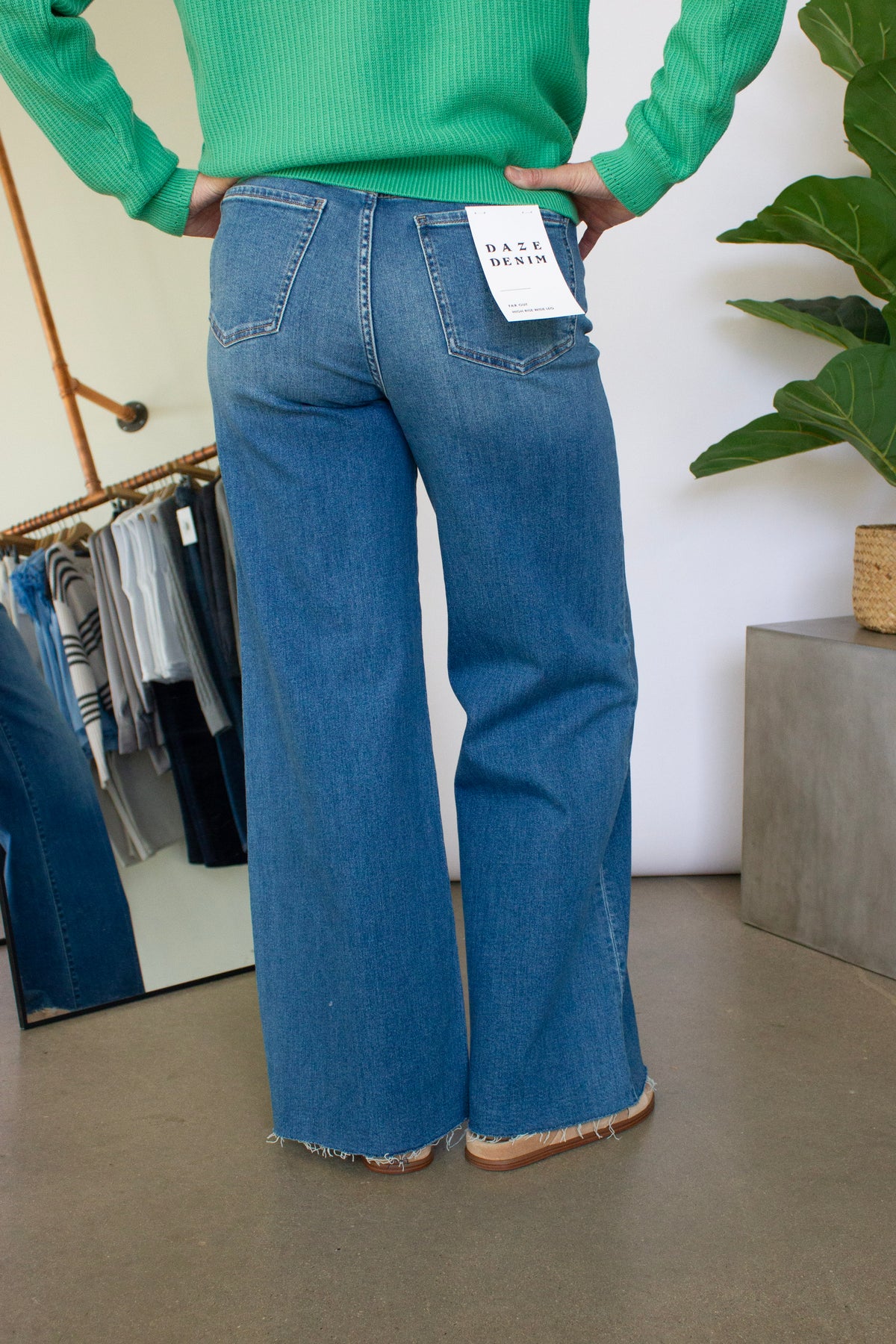 The Far Out High Rise Wide Leg jeans from Daze Denim deliver that effortless, retro-inspired vibe you've been craving. With a flattering high rise cut and relaxed wide leg silhouette, this denim staple offers comfort without compromising style. Perfect for pairing with everything from crop tops to oversized tees, they're the versatile piece every wardrobe needs.