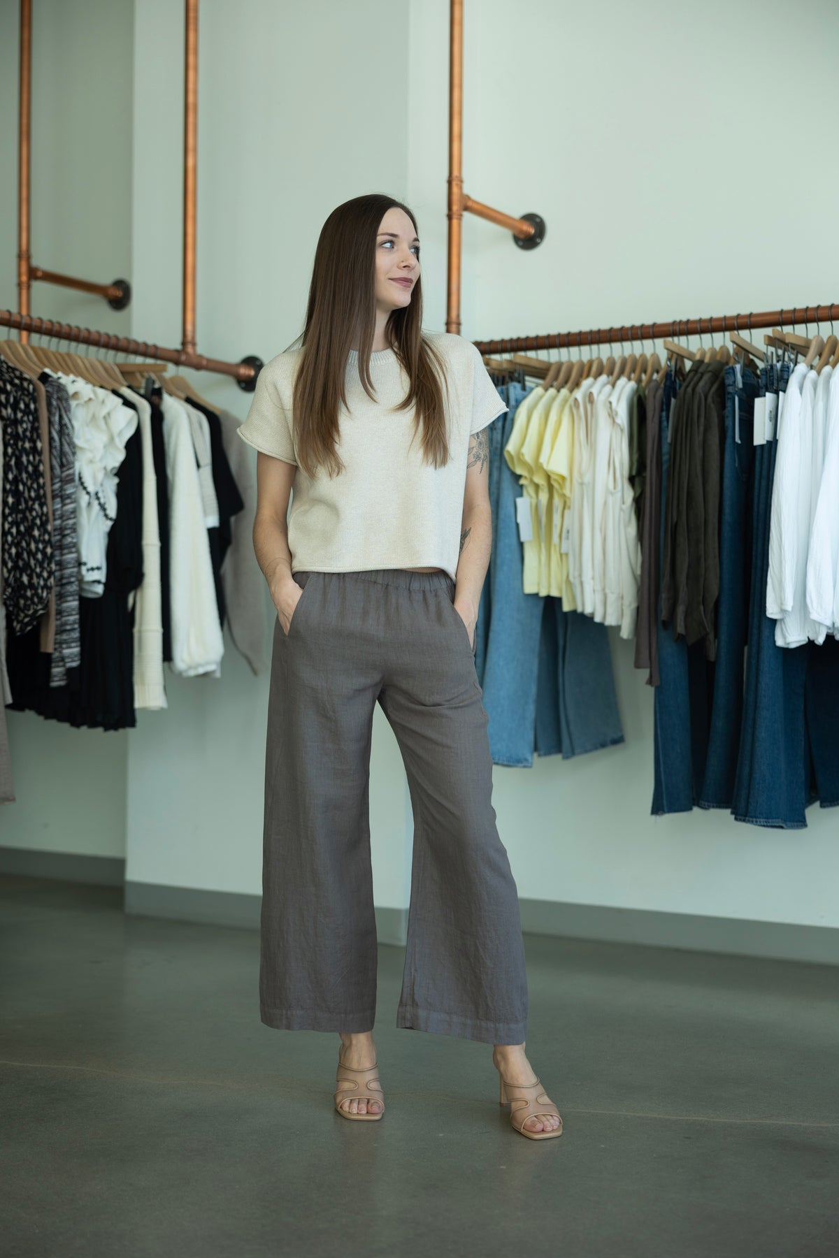 The Lola Pull On Pant from Velvet is your new go-to for effortless style. This cropped beauty flows beautifully in a versatile gray-brown tone that pairs with everything in your closet. The relaxed silhouette and pull-on design mean zero fuss—just slip them on and feel instantly put-together. Perfect for casual days when you want comfort without compromising on chic.
